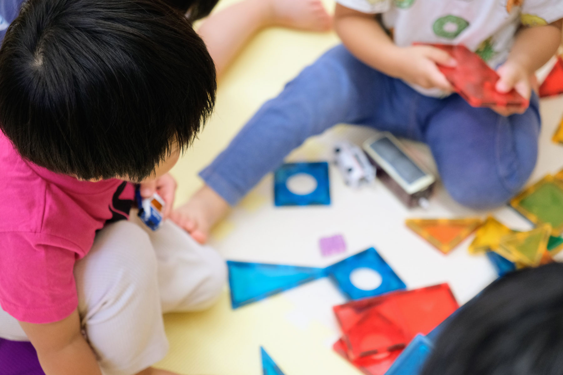 複数のテーマがある遊びのコーナーから、子どもが主体的に活動を選択。おままごと、ブロック、制作、運動遊びなど、それぞれの活動に集中できる環境を用意し、興味を持ったことにとことん取り組みます。自分で考え選び取るチカラ、粘り強さ、探求心を育みます。