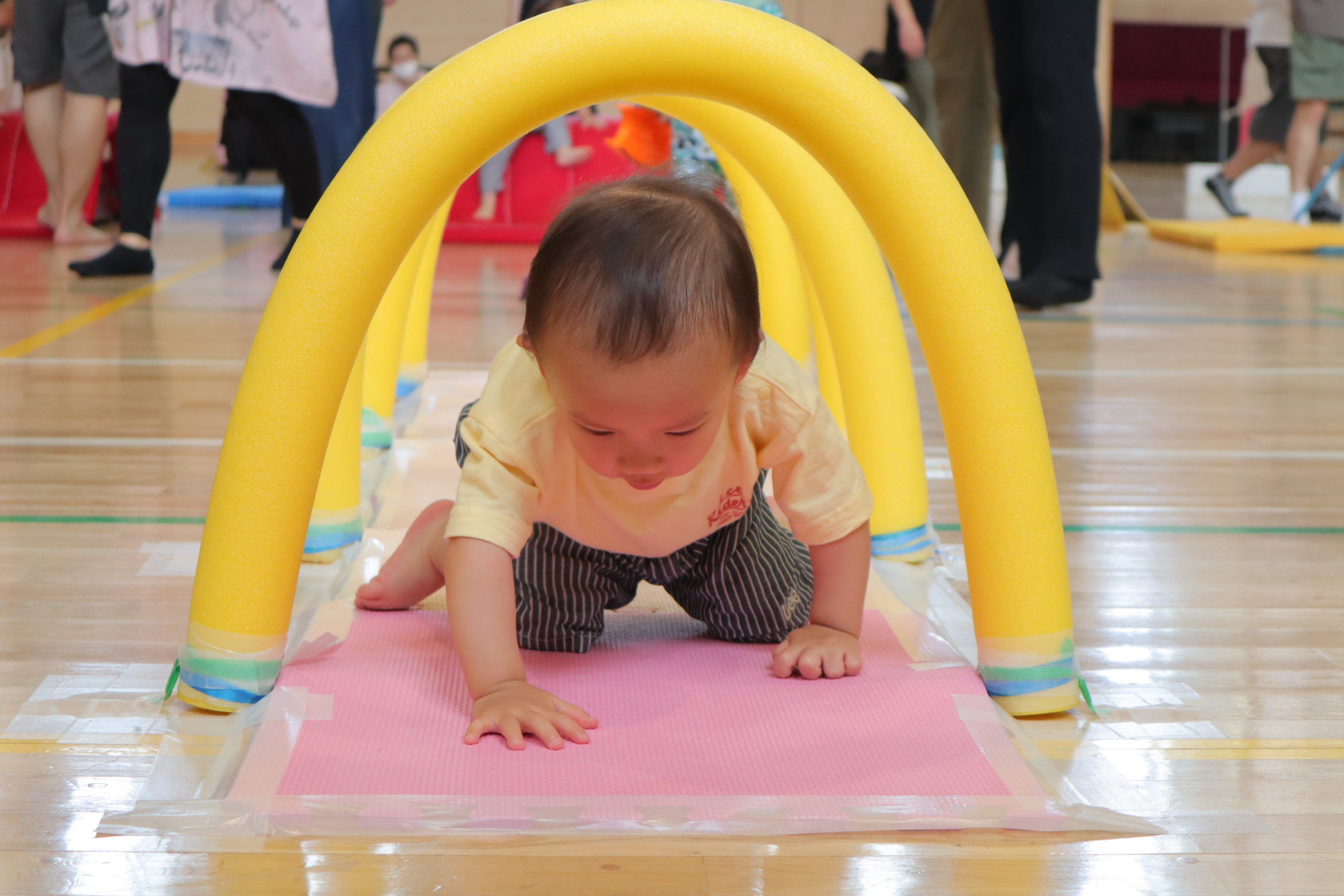 0歳児さんはハイハイレース!任意参加でしたが全児童が参加し、