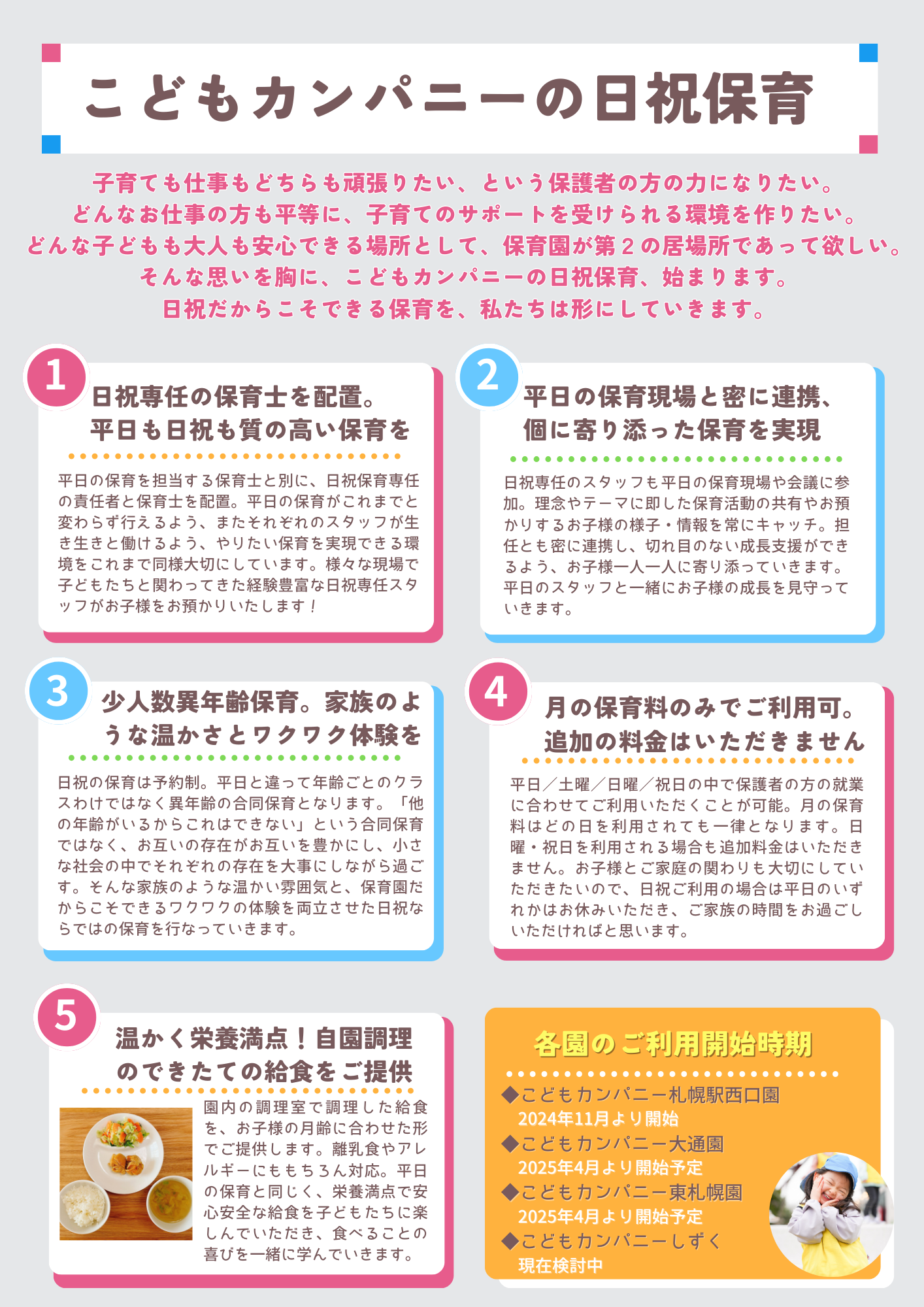 <こどもカンパニーの日祝保育について>