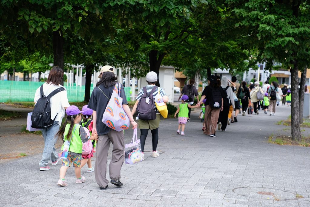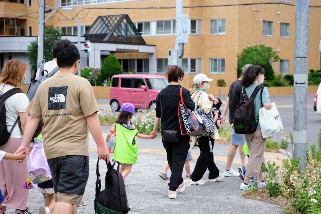 保護者の皆様と一緒に「東札幌公園」に出発!