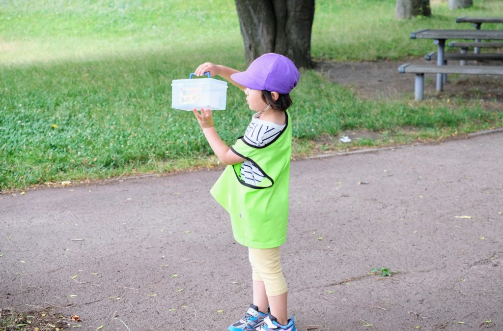 遊具で遊ぶ子、虫取りに夢中になる子。