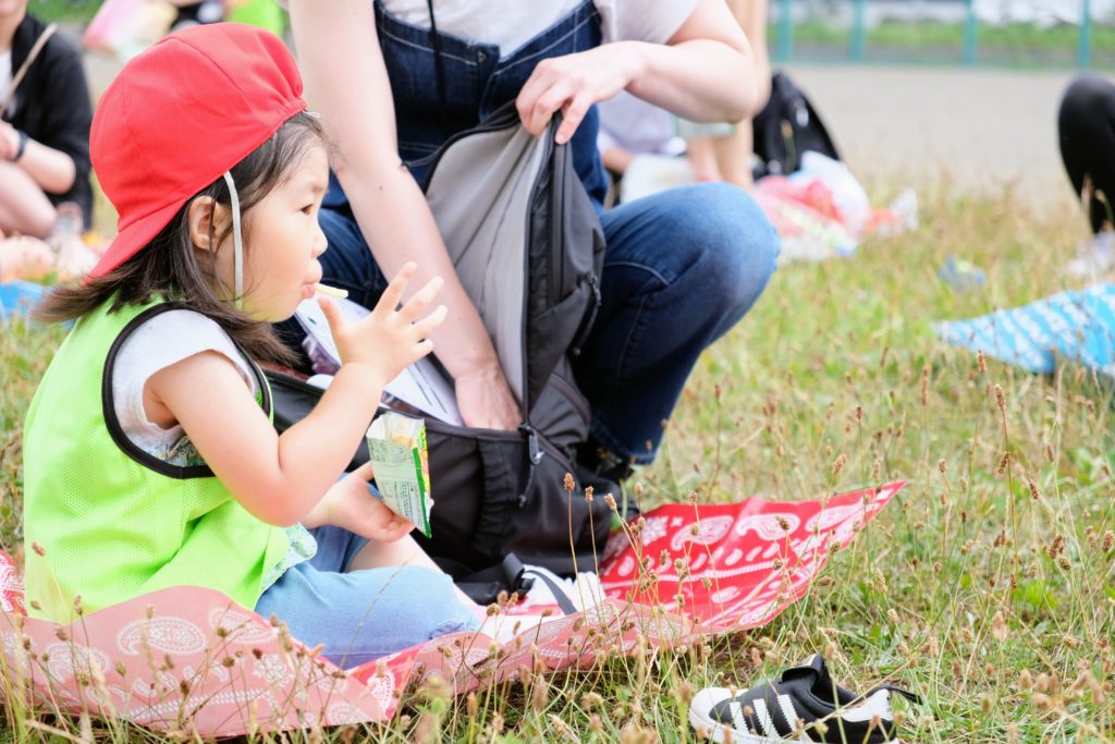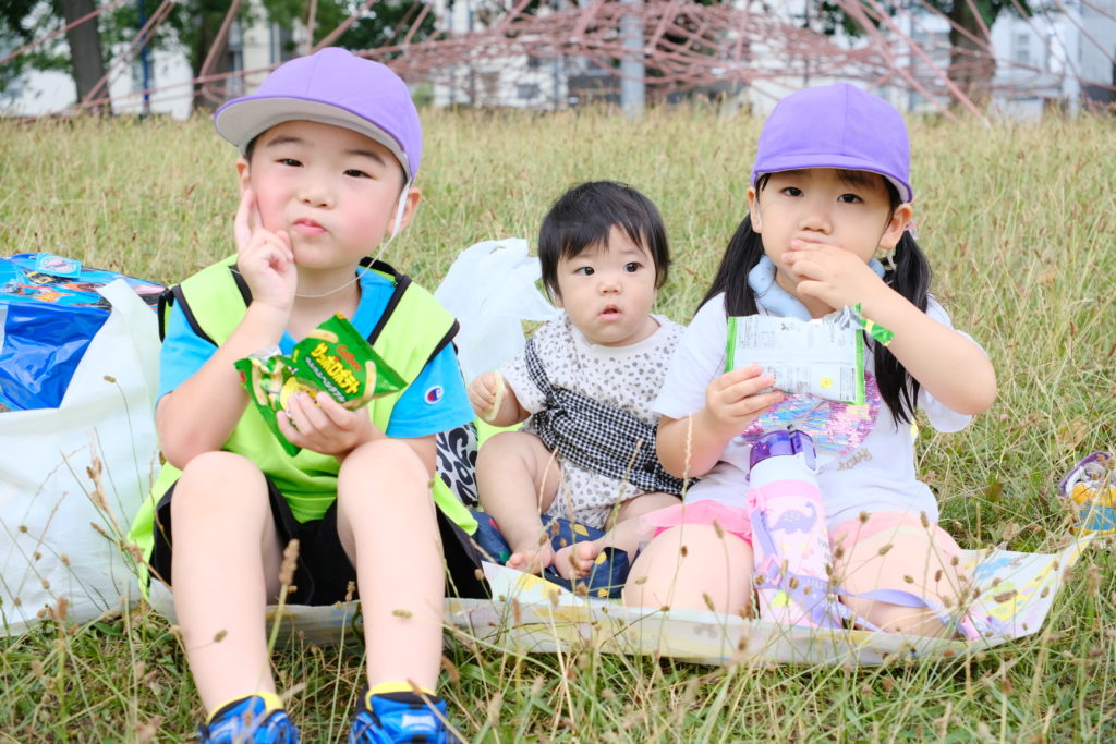 お外でみんな食べるといつもより美味しく感じるね。