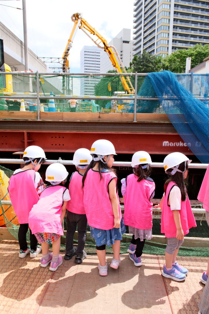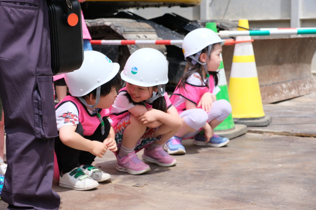 地面に大きな穴が掘られていたり、日々変わっていく風景に子どもたちはいつも興味津々。