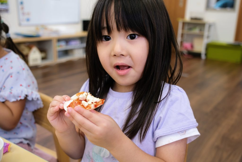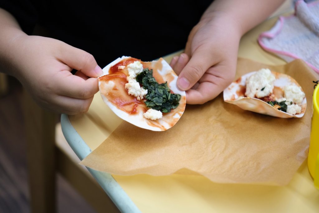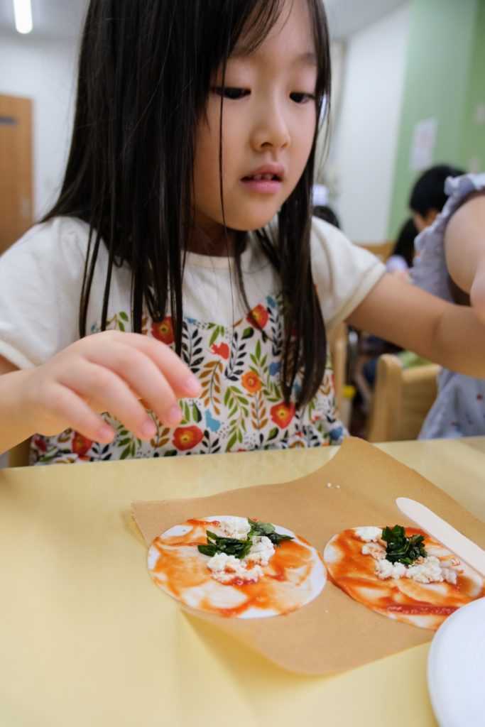 翌日は餃子の皮を使ったピザ作りに挑戦♪