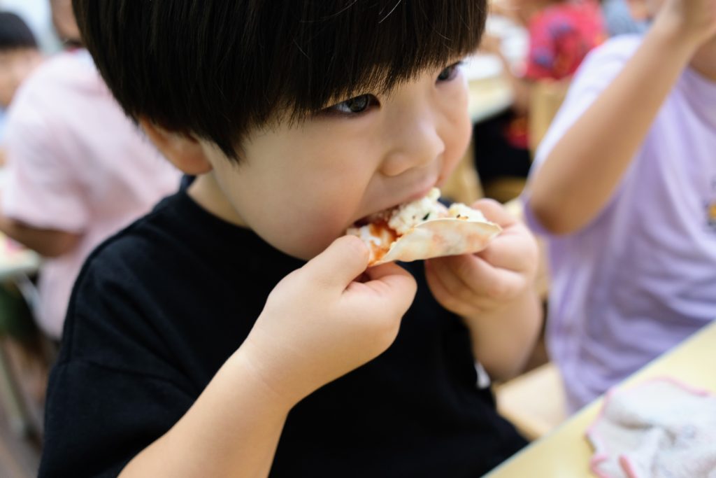 トッピングができたピザたちは、給食室の調理さんたちが焼いてくれました。