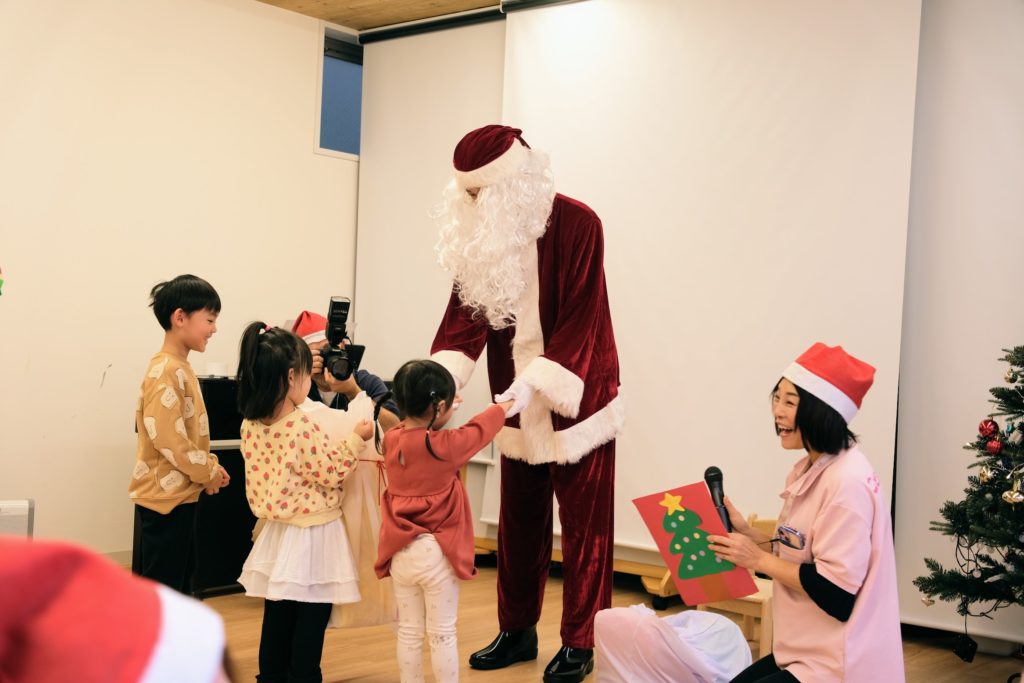 保護者さんがサンタに扮してクリスマス会に参加してくれるシーンも!