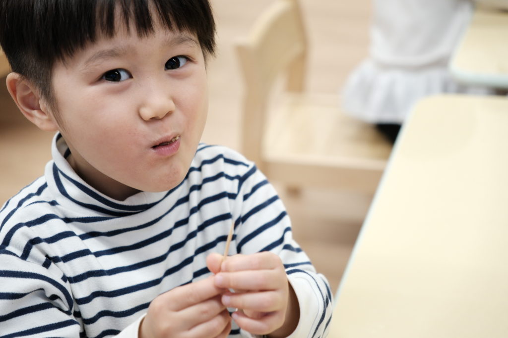 3〜5歳の異年齢クラスだからこそ、小さなお友だちだけで行うのがまだ難しいことを年長さんがサポートする様子も自然にみられました。小さいお友だちのおしごとを代わりにするのではなくて、見守る姿はとても印象的でした。