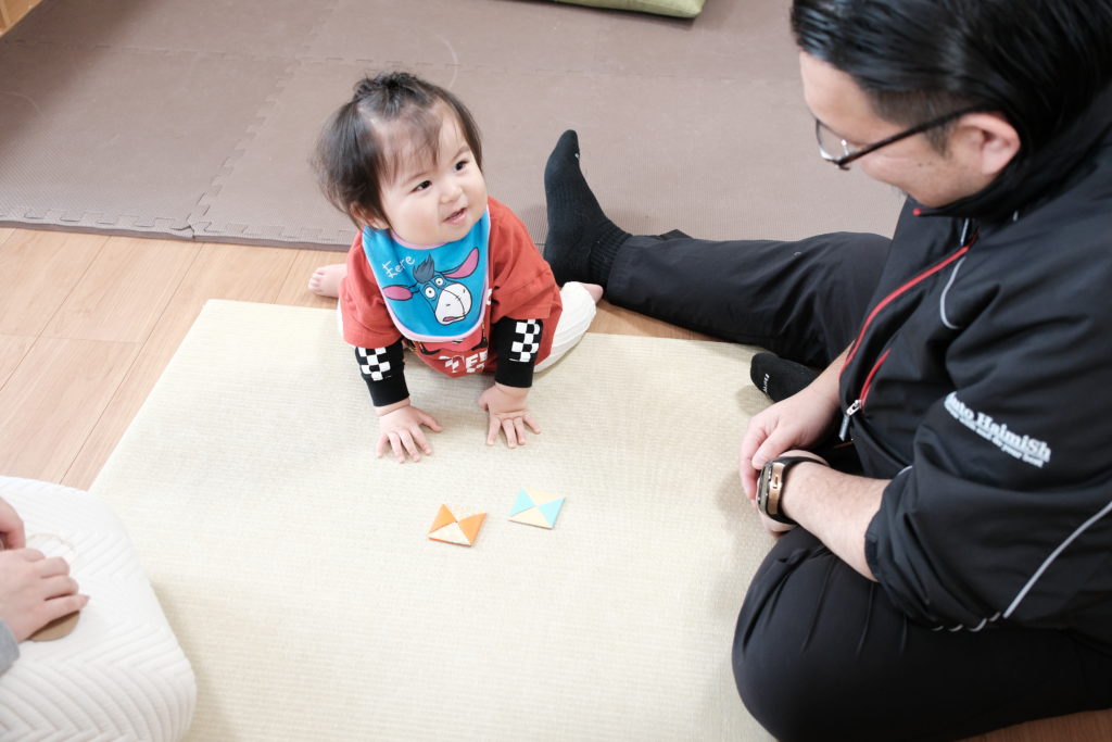 とっても上手に面子を扱うパパに、この眼差し👀✨(ぱぱ、スゴイ!)