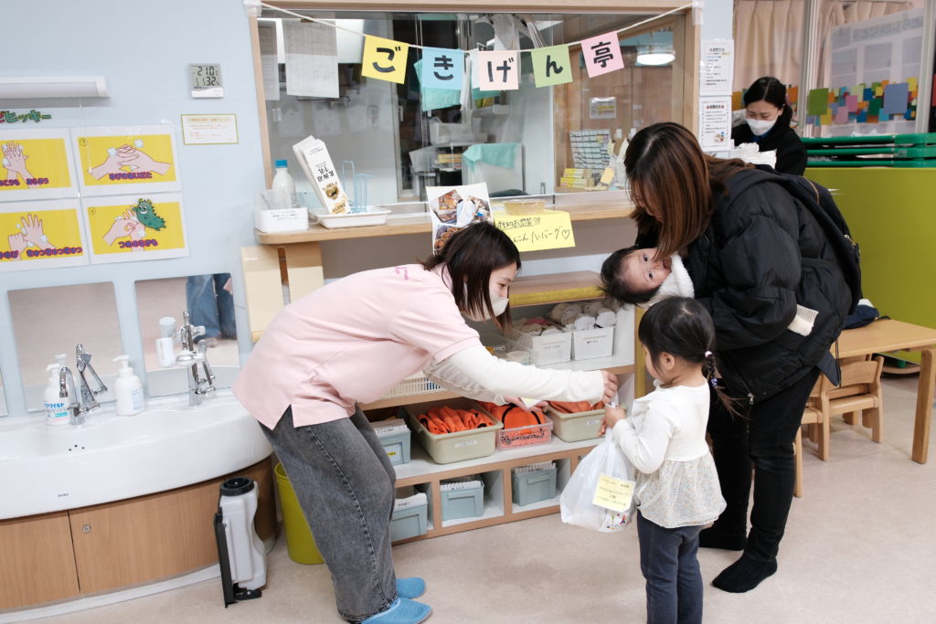 お迎えの時間、保護者さまと一緒に受け取りに来てくれた園児さんたち。